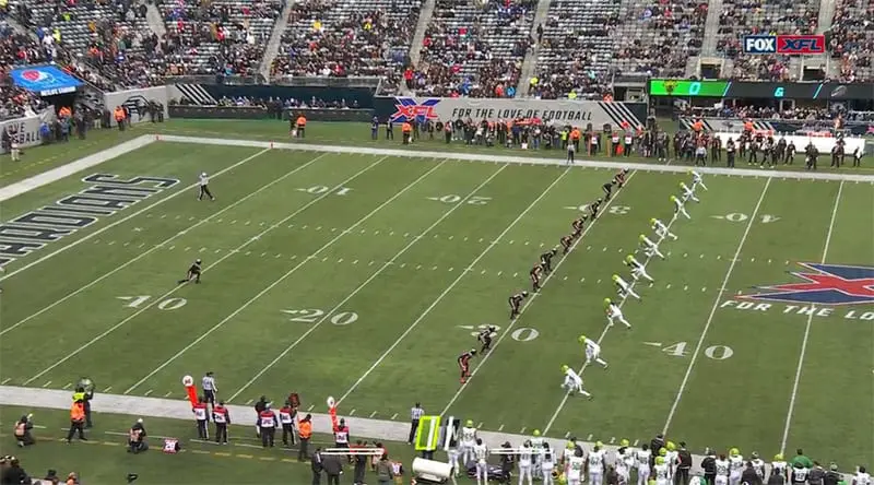 While the NFL uses seven on-field officials and the NCAAF uses eight, the XFL employs nine on-field officials including a specialized ball judge that is used only to spot the ball as quickly as possible. Keeping with the trend of speeding the game up, all instant replay reviews are initiated by the sky judge and are limited to 60 seconds of review time; there are no coach’s challenges.